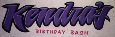 4' x 14' Paper banner Bright Purple (her favourite color!) is used along with a painted "Bevelled Edge" to give it a 3 Dimensional look. A splattered background nicely finishes this Birthday Banner.
