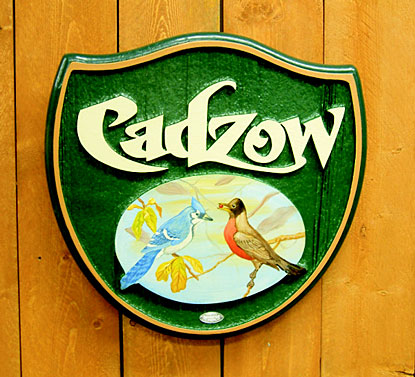 Sandblasted Cedar Sign. The Cadzow's have a son & daughter named "Jay & Robin".