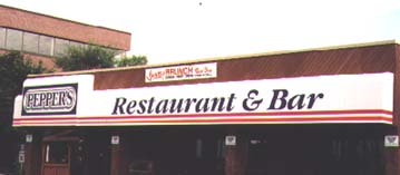 Painted in Spraybooth. Backlit Awning approx. 4' x 45'. White background is striking when lit Purple lettering with pink, and orange bars really sets it off.